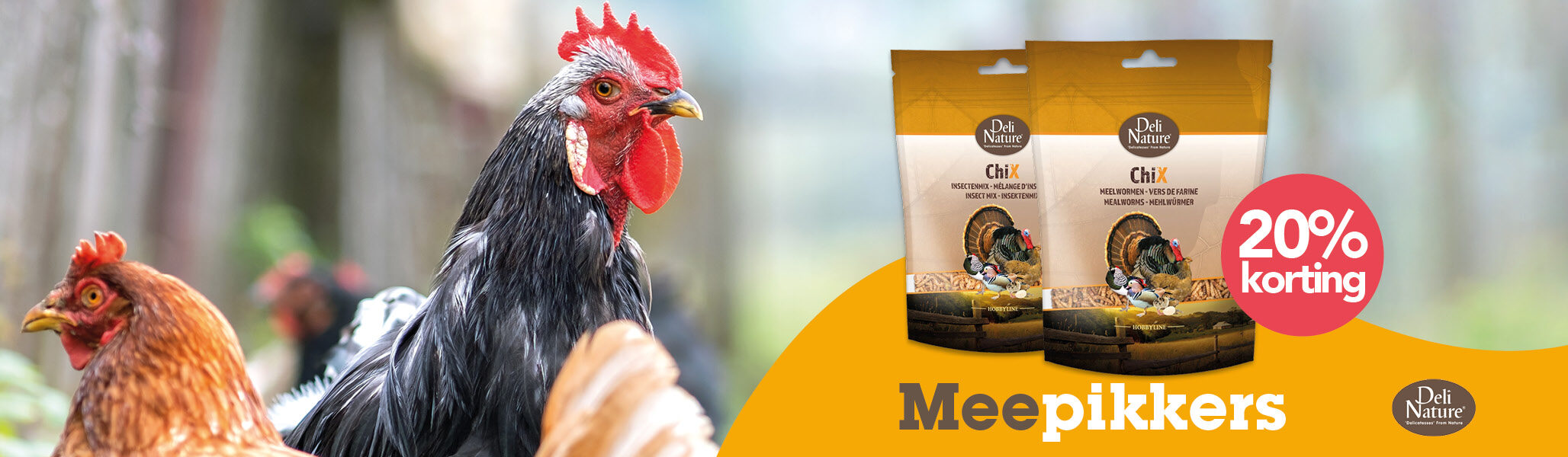 'Delicatesses' From Nature! Dat is waar Deli Nature met haar producten voor staat. Bij Deli Nature is ChiX de verzamelnaam voor kippenvoeders. Chick is Engels voor een kuiken/kip. “De X-line” maakt het onderscheid tussen kuikens, krielen en groothoenders. Smullen maar!