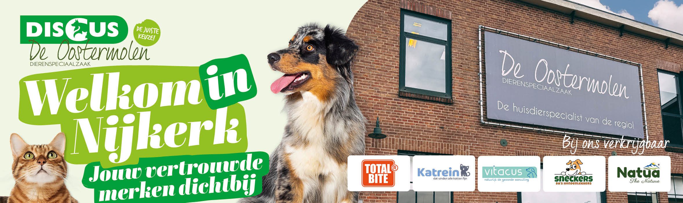 Kom jij uit Nijkerk, Harderwijk, Voorthuizen, Putten of ergens daartussen? Lees dan snel verder! Bij Discus de Oostermolen vind je alles voor jouw huisdier: vertrouwde merken, persoonlijk advies en een team met échte vakkennis.