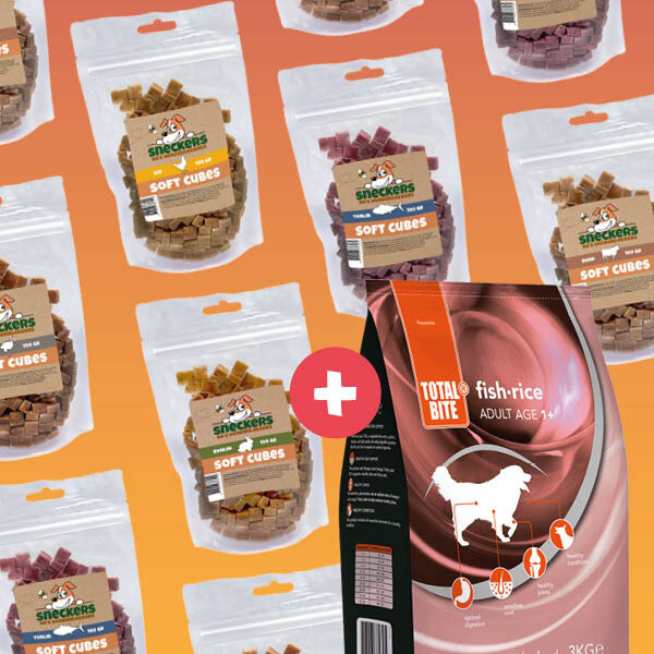 In december ontvang je bij aankoop van een grote zak Total Bite hondenvoeding een gratis zakje Sneckers hondensnacks!
