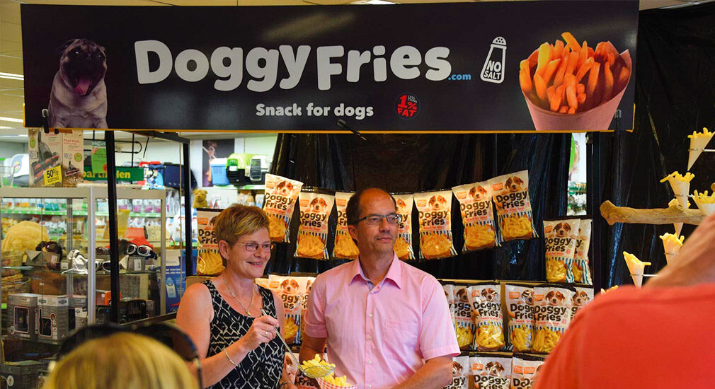 Doggy Fries is hondenpatat. Dit unieke nieuw product is bedacht en ontwikkeld door uw dierenspeciaalzaak Molenkamp in Zelhem. Bekend van het Kwispelbier voor honden wat nu www.snuffle-dogbeer.com heet. Doggyfries is ontzettend lekker bevonden door ons ruim test panel. Het is gemaakt van Aardappel en Mais en bevat minder dan 1% vet de rest is 99% smaak. En puur smaak zonder enige toevoegingen enkel en alleen deze 2 grondstoffen. Lekker knapperig en kan op ieder moment van de dag worden gegeven.