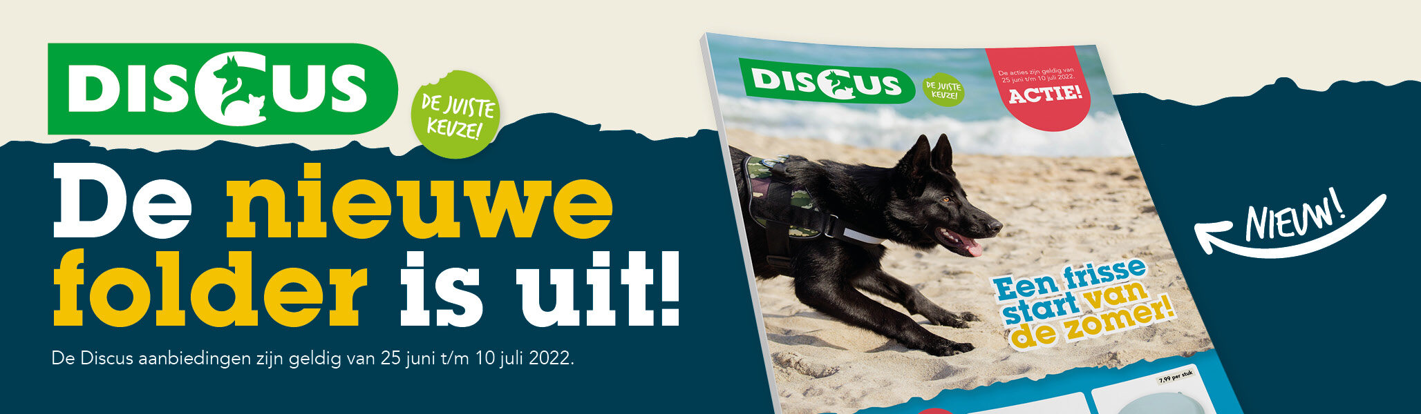 Profiteer nu van zomers veel voordeel voor je huisdier! De folder staat boordevol verfrissende zomerse producten tegen voordelige prijzen. Bekijk en bestel de folderacties online of kom naar de Discus dierenspeciaalzaak bij jou in de buurt! Het aanbod in de webshop kan anders zijn dan in de Discus winkel. Informeer naar de acties bij jouw Discus specialist. De aanbiedingen zijn geldig van 25 juni t/m 10 juli.