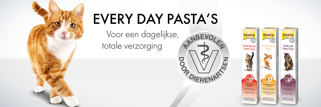 De Every Day pasta’s van GimCat zijn optimaal geschikt als dagelijkse voeding. Ze smaken heerlijk en voorzien je kat ook nog eens met hoogwaardige voedingsstoffen. De Every Day pasta's worden aanbevolen door dierenartsen en zijn gegarandeerd: