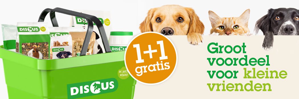Houd de brievenbus in de gaten en profiteer van deze geweldige actie met groot voordeel voor kleine vrienden. Shop nu extra voordelig het Discus huismerk hondenbrokken, kattenbrokken, hondenkoekjes, kruidenhooi, vogelpindakaas, strooivoer of graan voor Pluimvee. Knip jouw 1+1 gratis-bon uit en kom naar één van onderstaande deelnemende Discus winkels. Let op; de actie is slechts van 2 t/m 8 september geldig, dus wees er snel bij!