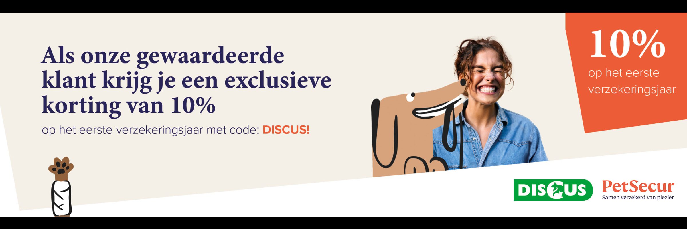 Als gewaardeerde klant van Discus krijg je bij het afsluiten van een PetSecur dierverzekering een exclusieve korting op het eerste verzekeringsjaar!