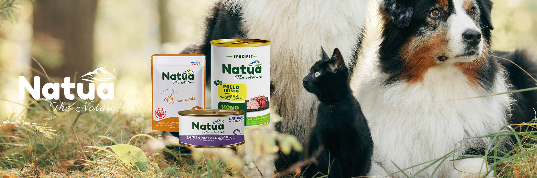 Bij Natua geloven we dat het beste voor jouw viervoeter uit de natuur komt. Natua biedt een breed assortiment aan natvoeding voor zowel honden als katten. Met pure ingrediënten en een onweerstaanbare smaak zorgt Natua voor voeding waar jouw hond of kat elke dag weer van geniet. Een merk dat écht snapt wat dieren willen eten en wat baasjes belangrijk vinden: variatie, kwaliteit, natuurlijke ingrediënten en een goede deal.