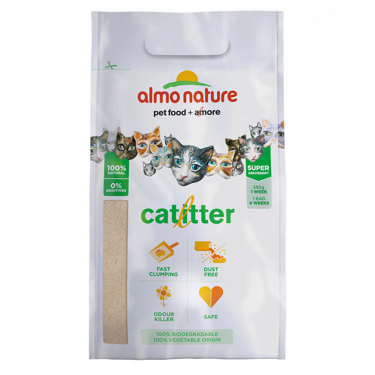 Almo Nature Catlitter 4,54 kg. Almo Nature CatLitter is een volledig natuurlijke, biologisch afbreekbare, composteerbare en doorspoelbare* kattenbakvulling, dat is gemaakt van plantaardige vezels.Het hoogwaardige grit gebruikt het zetmeel in de plantaardige vezels zodat het supersnel klontert. De omringende kattenbakvulling en de bak zelf blijven onaangetast. Bovendien neutraliseren de plantenzymen geurtjes op een veilige en natuurlijke manier.