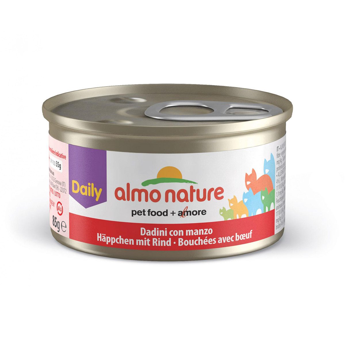 Almo Nature Dailymenu Cat Blokjes Rund 85gr. Daily menu is de kattenvoer lijn bereid met de beste verse ingrediënten, ideaal voor pet food recepten. Dankzij de gevarieerde premium ingrediënten (rood en wit vlees, vis, eieren, groenten en rijst) stellen we iedere kat zijn voorkeur tevreden. Compleet natuurlijke mousse, paté met heerlijke stukjes vrij van conserveermiddelen en kleurstoffen. Dailymenu bevat een selectie gecertificeerde biologische recepten: alle ingrediënten komen vanuit de biologische agricultuur.
