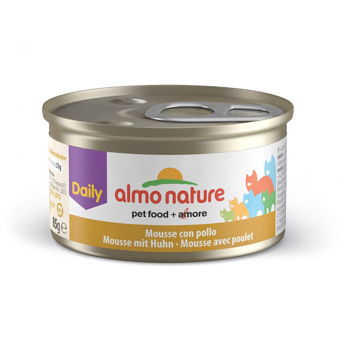Almo Nature Dailymenu Cat Mousse Kip 85gr. Daily menu is de kattenvoer lijn bereid met de beste verse ingrediënten, ideaal voor pet food recepten. Dankzij de gevarieerde premium ingrediënten (rood en wit vlees, vis, eieren, groenten en rijst) stellen we iedere kat zijn voorkeur tevreden. Compleet natuurlijke mousse, paté met heerlijke stukjes vrij van conserveermiddelen en kleurstoffen. Dailymenu bevat een selectie gecertificeerde biologische recepten: alle ingrediënten komen vanuit de biologische agricultuur.