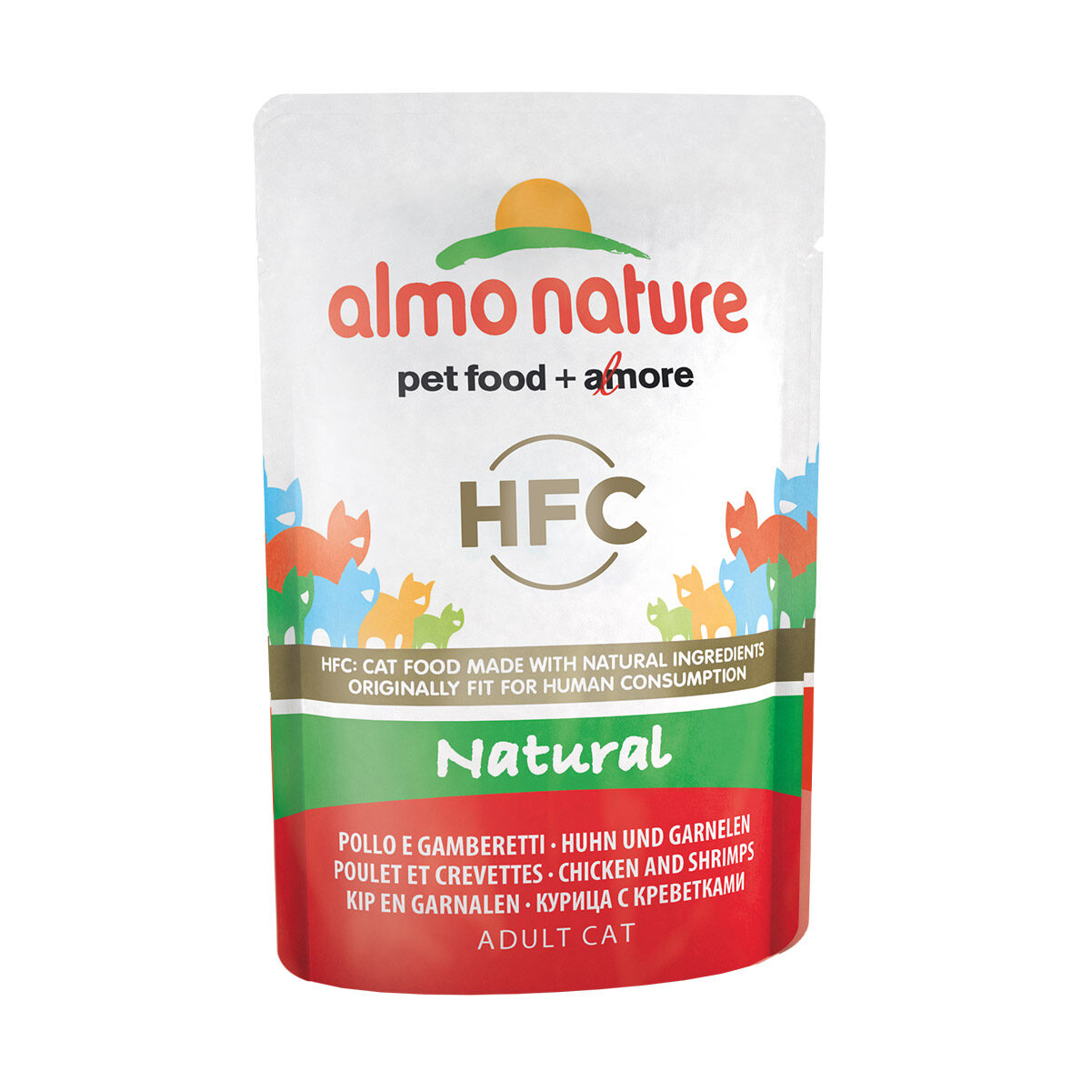 De kat behoort tot de strikte carnivoren: de tanden van een roofdier en een maag-darmstelsel zijn geschikt om op optimale wijze eiwitten te assimileren en te gebruiken. In de natuur, bestond de voeding van de kat uit verschillende prooien (muizen, vogels, vissen), een bron van hoofdzakelijk eiwitten en vetten (naast vezels en andere voedingsstoffen in het spijsverteringskanaal van de prooien). Het advies van Almo Nature voor een optimaal voedingsevenwicht is om af te wisselen tussen alle soorten vlees en vis, droog- en natvoer (respectievelijk in de volumeverhouding 60% en 40% ), allemaal eenvoudige, elkaar aanvullende en complete voedingsmiddelen. Natvoer is essentieel in de dagelijkse voeding van de kat om de hydratatie te bevorderen en het risico van urinaire aandoeningen te verminderen.