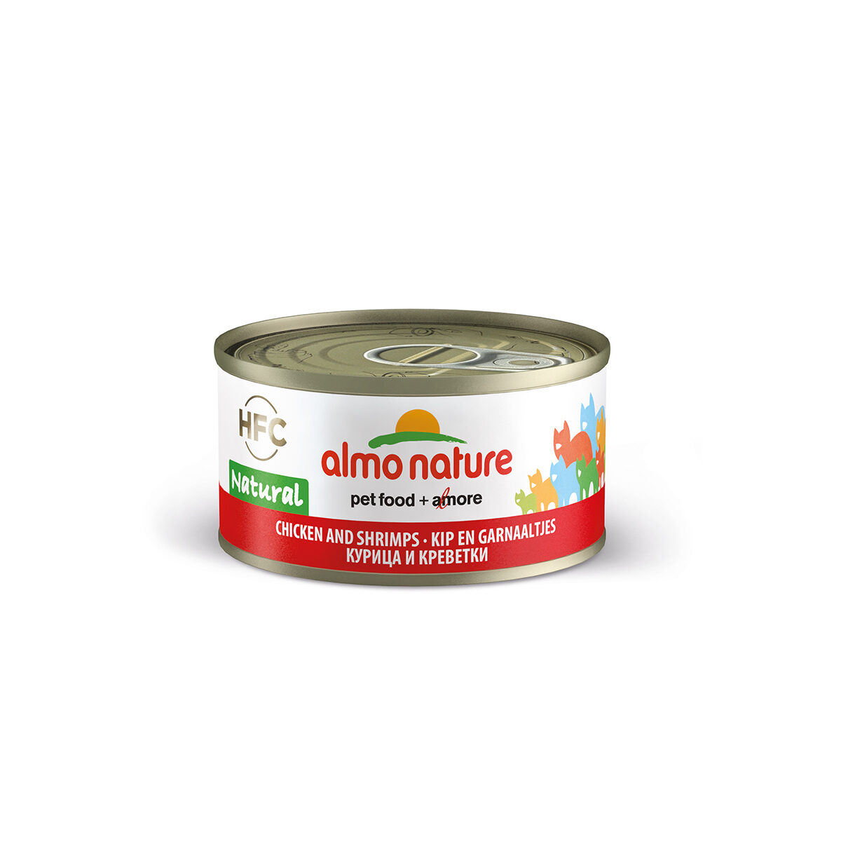 Almo Nature HFC Natural Kip&Garnaaltjes 70gr. Almo Nature Natural Kip&Garnaaltjes is een 100% natuurlijk product. Er zijn geen kunstmatige hulpstoffen aan toegevoegd. Ook bevat Almo Nature geen conserveringsmiddelen. Combineer verschillende smaken van Almo Nature kattenvoer voor het beste en lekkerste resultaat.