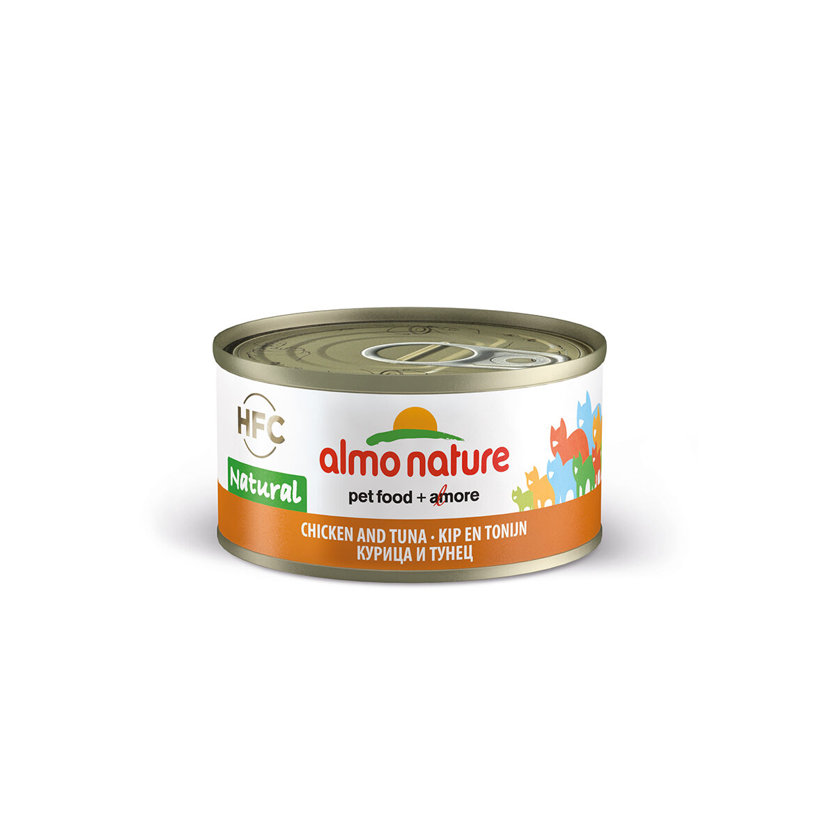 Almo Nature HFC Natural Kip&Tonijn 70gr. Almo Nature Natural Kip&Lever is een 100% natuurlijk product. Er zijn geen kunstmatige hulpstoffen aan toegevoegd. Ook bevat Almo Nature geen conserveringsmiddelen. Combineer verschillende smaken van Almo Nature kattenvoer voor het beste en lekkerste resultaat.