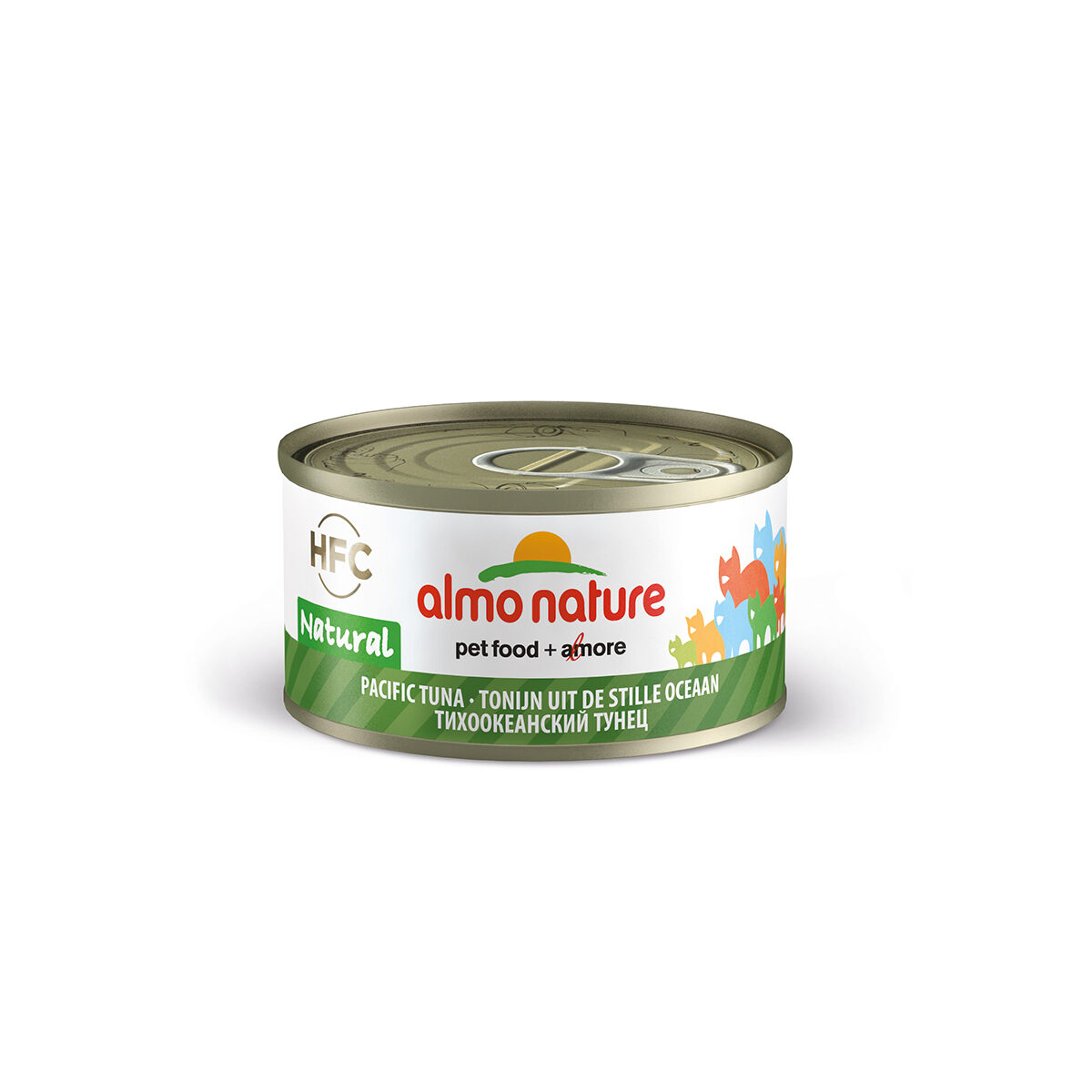 Almo Nature HFC Natural Tonijn Uit De Stille-Oceaan 70gr. Almo Nature HFC Natural Tonijn uit de Atlantische-Oceaan is een 100% natuurlijk product. Er zijn geen kunstmatige hulpstoffen aan toegevoegd. Ook bevat Almo Nature geen conserveringsmiddelen. Combineer verschillende smaken van Almo Nature kattenvoer voor het beste en lekkerste resultaat.