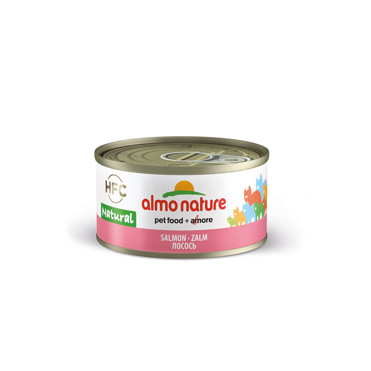 Almo Nature HFC Cat Jelly Zalm 70gr. De legendarische Almo Nature kwaliteit is tegenwoordig nog transparanter: de HFC acroniem verklaart de herkomst van de ingrediënten in het recept, dat van origine geschikt is voor menselijke consumptie. Bereid met weinig ingrediënten en gewoon gekookt in bouillon of au bain marie, alle HFC recepten zijn ideaal om op natuurlijke wijze de kat te hydrateren, dankzij hun rijke bouillon.