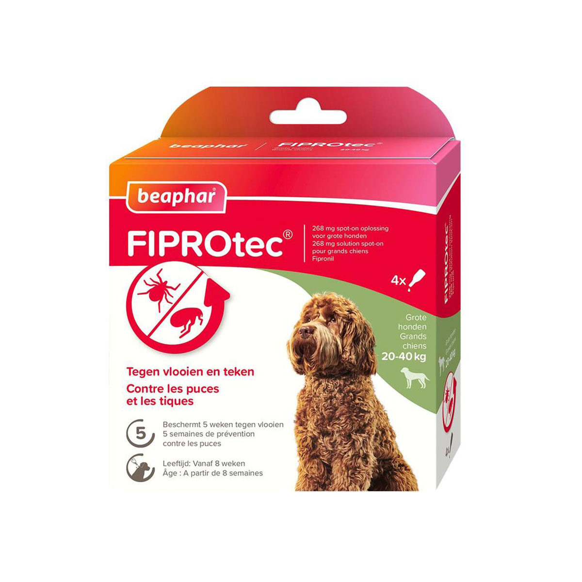 Beaphar Fiprotec Spot On Hond 20-40 kg is een effectief middel ter bestrijding van vlooien en teken. Vlooien en teken kunnen veel overlast veroorzaken. Met Beaphar Fiprotec Spot On Hond 10-20 kg kun je jouw hond beschermen tegen deze kleine insecten. Dit diergeneesmiddel bevat de werkzame stof Fipronil, wereldwijd de meest gebruikte werkzame stof in de strijd tegen vlooien en teken. 1 pipet beschermt jouw hond tot 5 weken tegen vlooien en tot 4 weken tegen teken.