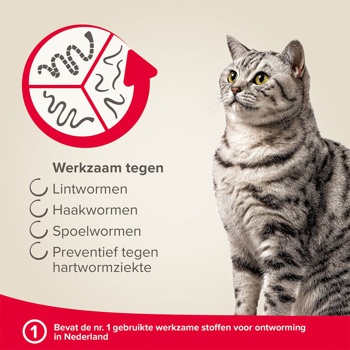 bevat de nr. 1 gebruikte werkzame stoffen voor ontworming in Nederland Kijk voor een advies op maat of meer informatie over ontwormen op: www.wegmetwormen.nl Werkzame stof: Milbemycine oxime 16mg, Praziquantel 40mg.