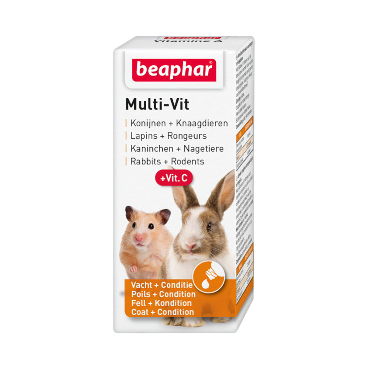 Beaphar Multi-Vit Knaagdier bevat 11 vitaminen voor het behoud van een normale huid en vacht en draagt bij tot de normale werking van het immuunsysteem. Multi-Vit Knaagdier bevat tevens het voor cavia's essentiële vitamine C.