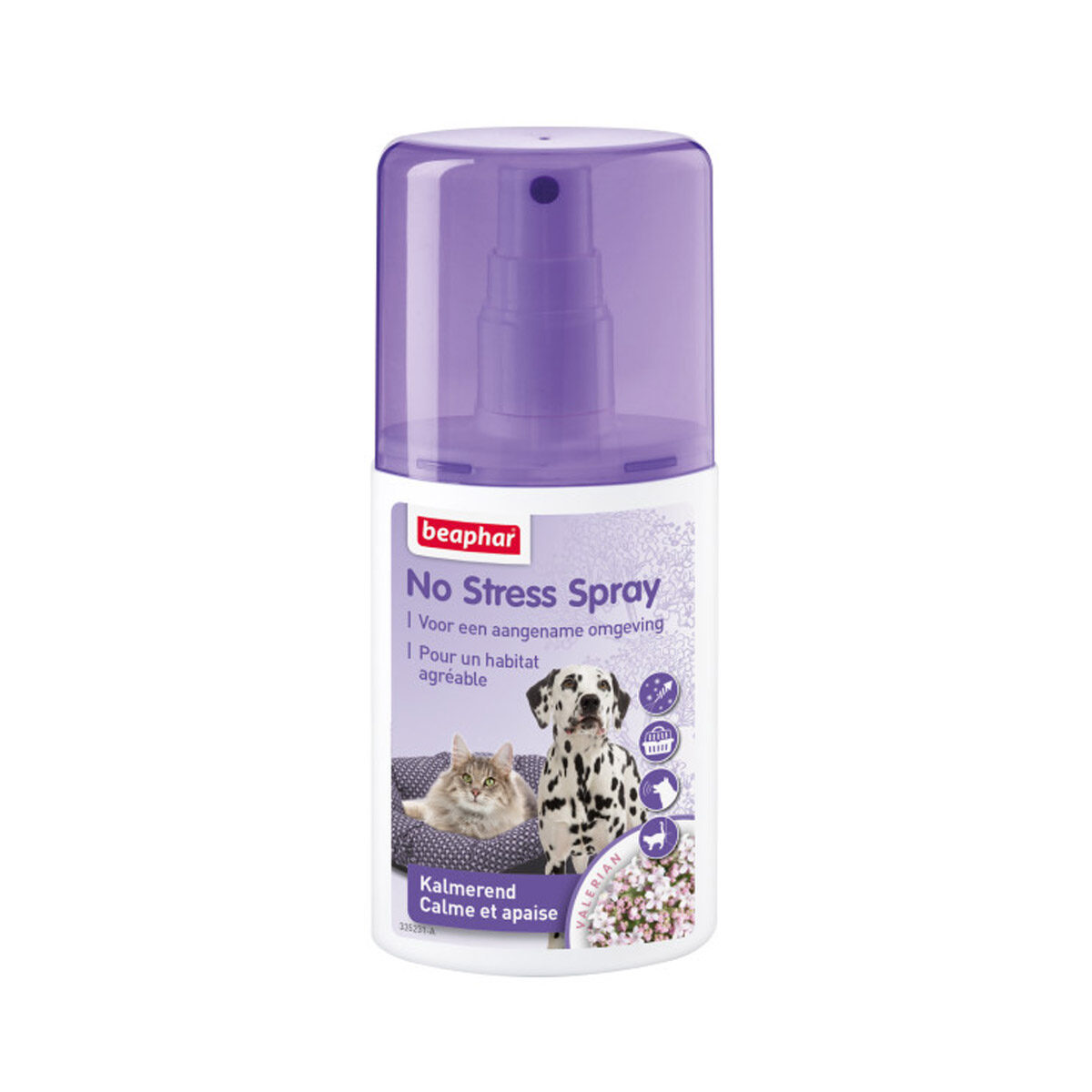 Beaphar No Stress Spray Kat 125 ml. No Stress Spray helpt katten zich veilig te voelen in een voor hen stressvolle omgeving. Met valeriaan, een natuurlijk kalmerend middel. Te gebruiken bij overmatig sproeien of miauwen, verlatingsangst, reizen of verhuizen, onweer en vuurwerk.