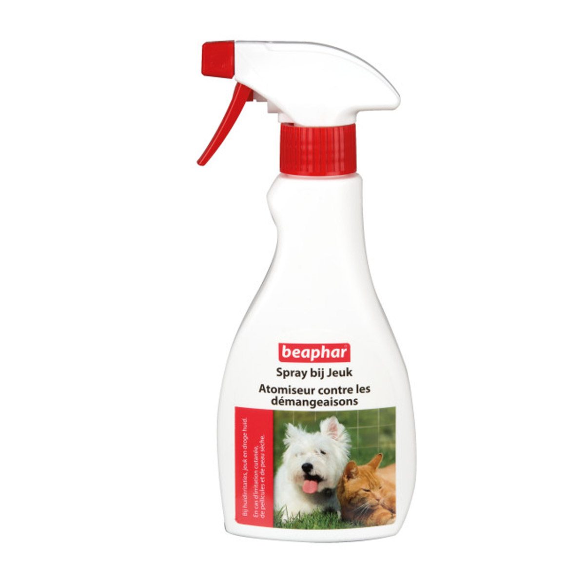 Spray bij Jeuk is een mild huidverzorgingsproduct. Te gebruiken bij huidirritaties, roos of een droge huid. De combinatie van onder andere Aloë Vera, Teunisbloemolie en Castor-olie verzacht de gevoelige huid en houdt deze zacht en soepel. De spray hydrateert en ondersteunt het herstel van de huid. Spray bij Jeuk is geschikt voor zowel honden als katten.