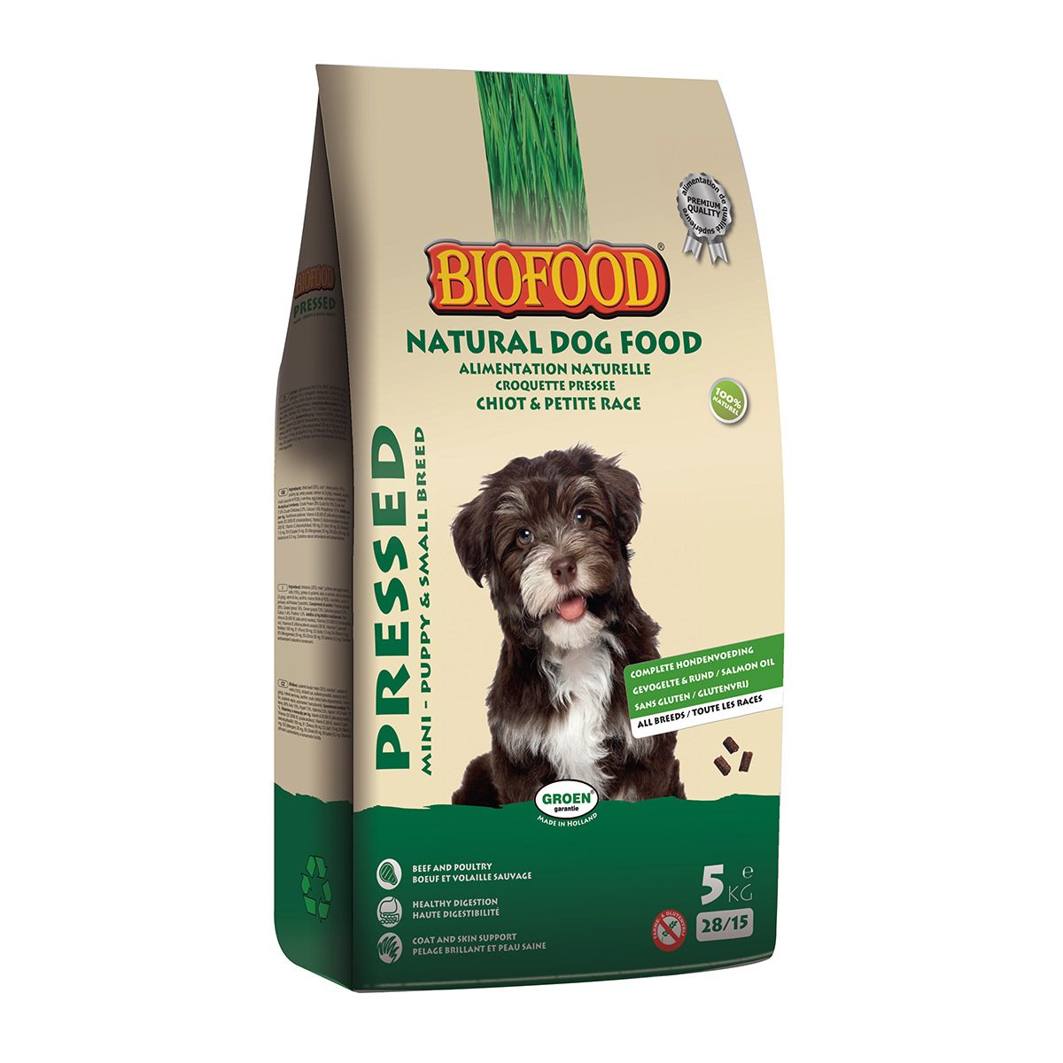 Biofood Geperst Mini&Puppy 5 kg. Biofood geperst mini - puppy & small breed is van Nederlandse topkwaliteit. Hoogwaardige natuurlijke grondstoffen. Volledige geperste hondenvoeding. 69% rund, kip en maïs. Met gezonde echinacea kruiden, zalmolie met omega 3 & 6 vetzuren en vitaminen en mineralen. Tarwe- en glutenvrij. Eiwit/vetgehalte (28/15). Hoge acceptatie en verteerbaarheid. Lage maagbelasting en verhitting van de brok. Ideaal voor kieskeurige en moeilijke eters. Zonder chemische toevoegingen. Optimale voeding die zorgt voor een betere vertering, ontlasting en een goede conditie van je hond. Voor jonge honden en als all life stage voeding voor volwassen honden van kleine rassen.