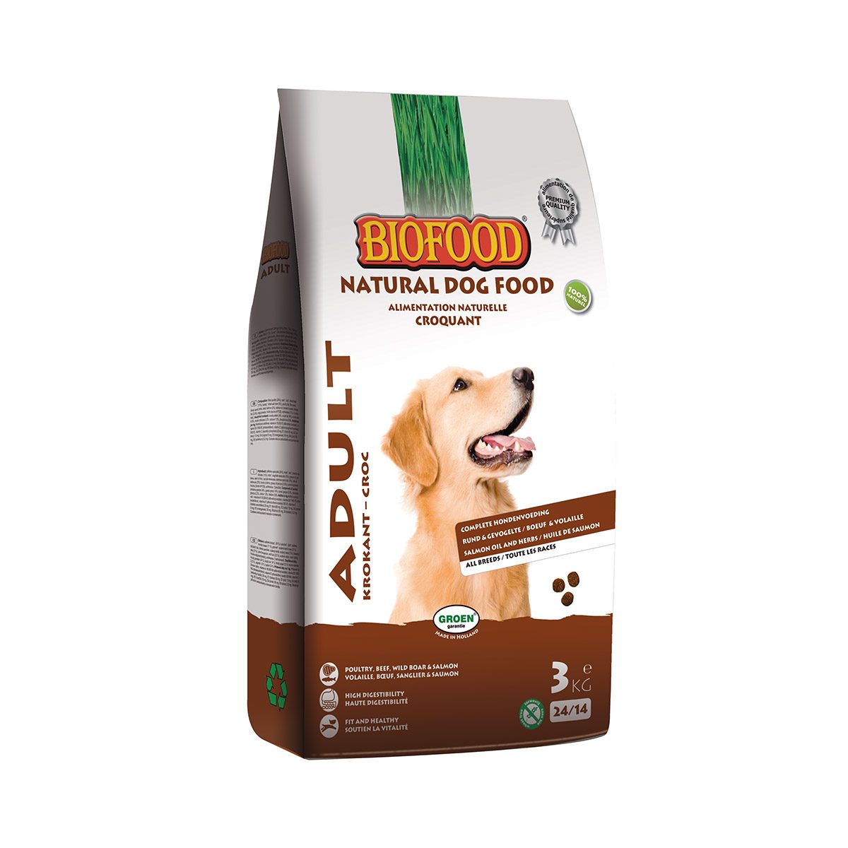 Biofood Krokant 3 kg. Een licht verteerbare, zeer smakelijke brok van Nederlandse topkwaliteit. Biofood krokant bevat de optimale dagelijkse hoeveelheid eiwitten, vetten, koolhydraten, vitaminen en mineralen die bijdragen tot een goede gezondheid van jouw hond. De bronnen van eiwitten, koolhydraten en vetten zijn van hoge kwaliteit. Deze zorgen voor een betere vertering, ontlasting en een goede conditie van jouw hond.