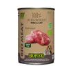 Samenstelling: 94,5% rund * (60% spiervlees, 20% hart, 10% long, 10% lever), 2% pompoen *, 1,5% kokosschilfers *, 1% knofl ook*, 1% quinoa *, 0,5% biergist* * biologisch. Analyse: vocht: 77,8%, ruw eiwit: 11%, ruw vet: 6,7%, ruwe celstof: 0,2%, ruwe as: 0,8%. Additieven: voedingsadditief per kg: 1000 mg taurine.