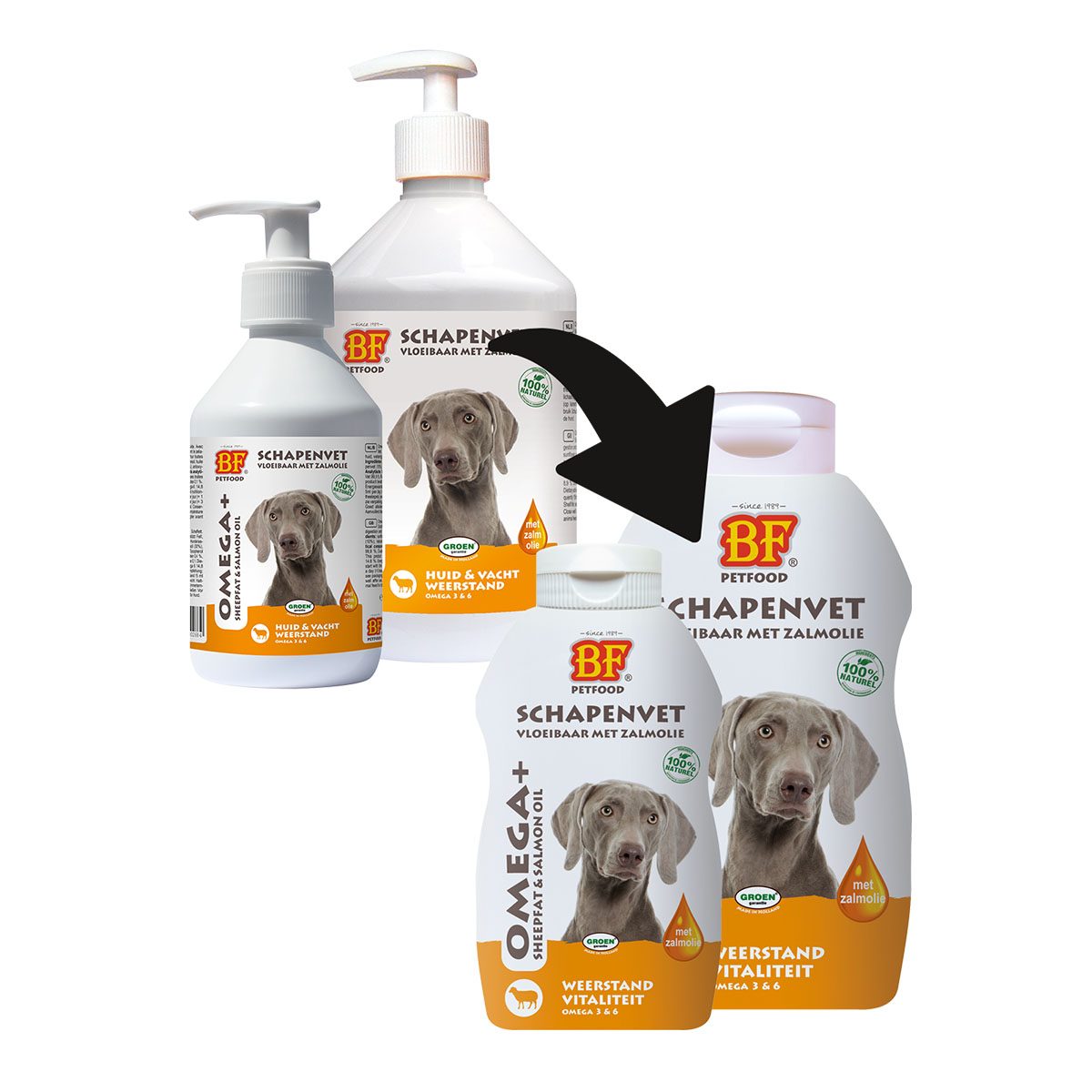 Biofood Vloeibaar schapenvet met zalmolie is een vloeibare smaakmaker en de oplossing bij vele huid- en vacht irritaties bij honden. Geschikt voor alle hondenrassen en ook verkrijgbaar in een variant met een inhoud van 250 ml.