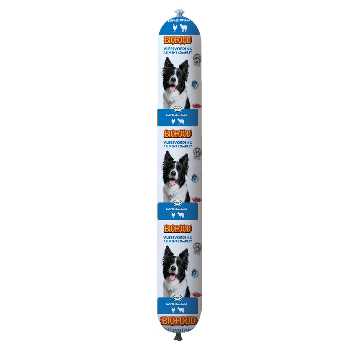 Biofood Vleesvoeding Compleet Lam 800 gram. Biofood vleesvoeding is een natuurlijke, complete en houdbare hondenvoeding op basis van vers vlees, orgaanvlees, rijst, schapenvet en natuurkruiden. Is uitermate geschikt voor vleesdagen, als traktatie, voor onderweg, smaakmaker, bij omschakeling naar ander voer of voor honden die slecht reageren op droogvoeding. Handige worst 800 gram. Geschikt voor iedere hond, van pup tot senior.