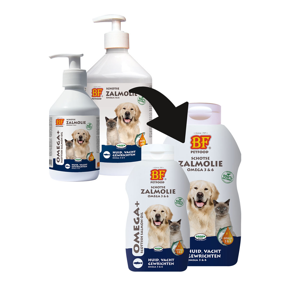 Biofood Zalmolie 500 ml is voor hond en kat en alle leeftijden. De zalmolie is sterk geconcentreerd en vrij van zware metalen, PCB’s en dioxines.1 bus is voldoende voor ca. 25 m2.