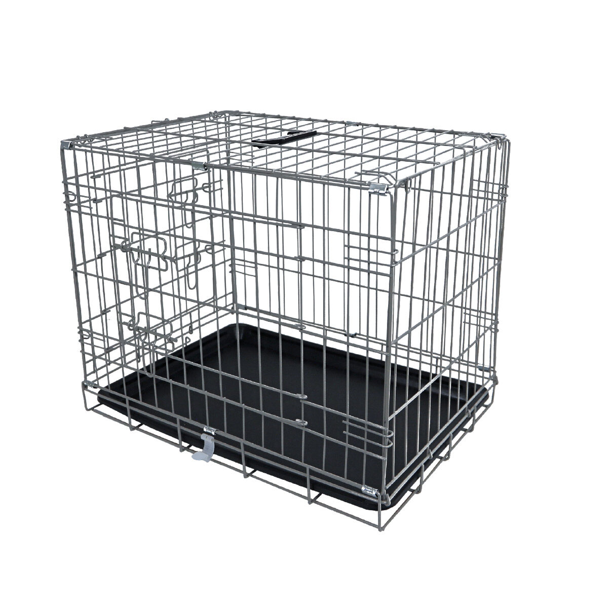 De bench heeft 2 deuren, waarvan 1 aan de smalle zijde en 1 aan de lange zijde. Hierdoor is deze in vele posities te gebruiken. De bodem van de hondenbench is gemaakt van kunststof en is dus makkelijk schoon te maken.