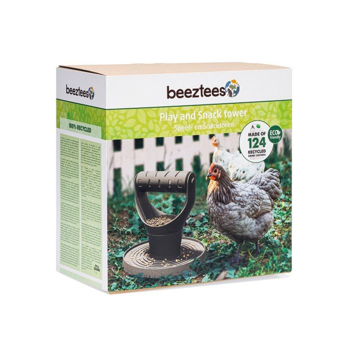 De Kip speel- en Snacktoren van Beeztees voorziet jouw kip van veel plezier! Al pikkend tegen de snackroller zal hij beloond worden met het voer of de snacks die je in de snacktoren verstopt. De roller zal gaan draaien door het pikken, waardoor de beloning via de gaatjes in de roller vrij zal komen. De roller is eenvoudig los te klikken via de dop aan de zijkant.