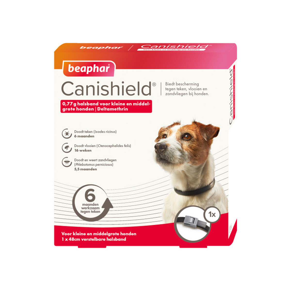 Beaphar Canishield Hond is een halsband die jouw hond tot 6 maanden beschermt tegen teken, vlooien en zandvliegen. Geschikt voor grote honden. Zo hoef je niet elke maand te behandelen, maar is de hond voor een langere periode beschermd. Ideaal ook voor de vakantieperiode. De band is daarnaast makkelijk om te doen en geurloos! De Beaphar Canishield Hond Klein-Middel 48 cm is geschikt voor grote honden. Er is ook een variant verkrijgbaar voor honden van groot formaat.