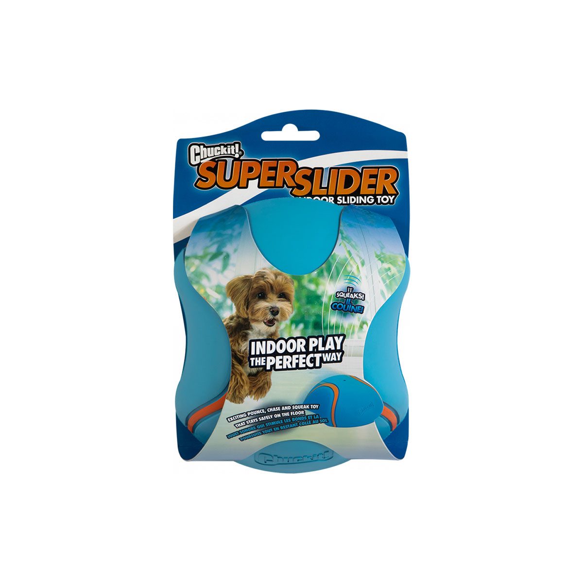 Chuckit Indoor Slider. Deze gave indoor slider van Chuckit is speciaal ontwikkeld voor binnenshuis en zal door het gebruik van het zachte materiaal uw interieur niet beschadigen. De Slider heeft een gladde onderkant, waardoor het gemakkelijk over allerlei vloeren en materialen glijdt. Hierdoor wordt het natuurlijke achtervolgingsinstinct van de hond geactiveerd en is het voor de hond zelfs mogelijk om zelf met de Slider te apporteren. Dankzij de vorm zit er bovendien een extra uitdaging in het vangen van de Slider. De bovenkant is namelijk gemaakt van zacht materiaal, waarin een pieper verwerkt zit dat piept zodra de hond erop gaat staan of erin bijt. Het rubberen materiaal is zelfs zo ontwikkeld, dat het extra lang meegaat. Daag uw hond uit en kies voor uren speelplezier met de ChuckIt Indoor Slider! Onderkant van glad materiaal, waardoor de Slider over de meeste vloeren glijdt. Grote rubberen luchtkamer, die een extra uitdaging biedt. Robuuste pieper, dat het speelplezier vergroot.