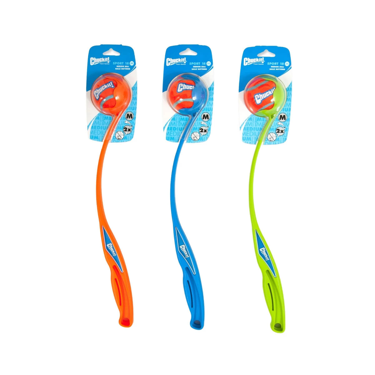 De Sport Ball Launcher van Chuckit levert jou en je hond veel speelplezier op. De Launcher zorgt ervoor dat je de bal gemakkelijk een eind weg kunt gooien. De ball launcher wordt geleverd inclusief tennisbal, die goed opvalt door de felle kleur en het stuiten effect.