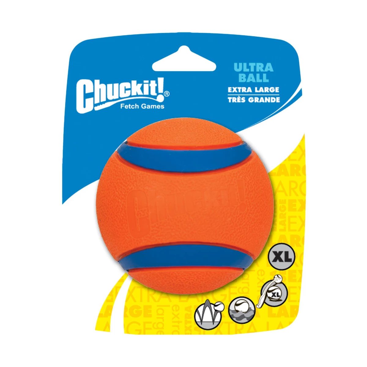De Ultra Ball van Chuckit is het ideale werpspeelgoed voor tijdens het apporteerspel. De ultra ball stuitert hoger en verder dan elke andere bal. De bal is gemaakt van een duurzaam rubber, waardoor hij lang meegaat. De felle kleuren van de bal zorgen ervoor dat deze goed zichtbaar blijft na het wegwerpen. Het kwaliteitsrubber zorgt ervoor dat de bal blijft drijven, waardoor het speelgoed op bijna ieder terrein gebruikt kan worden.
