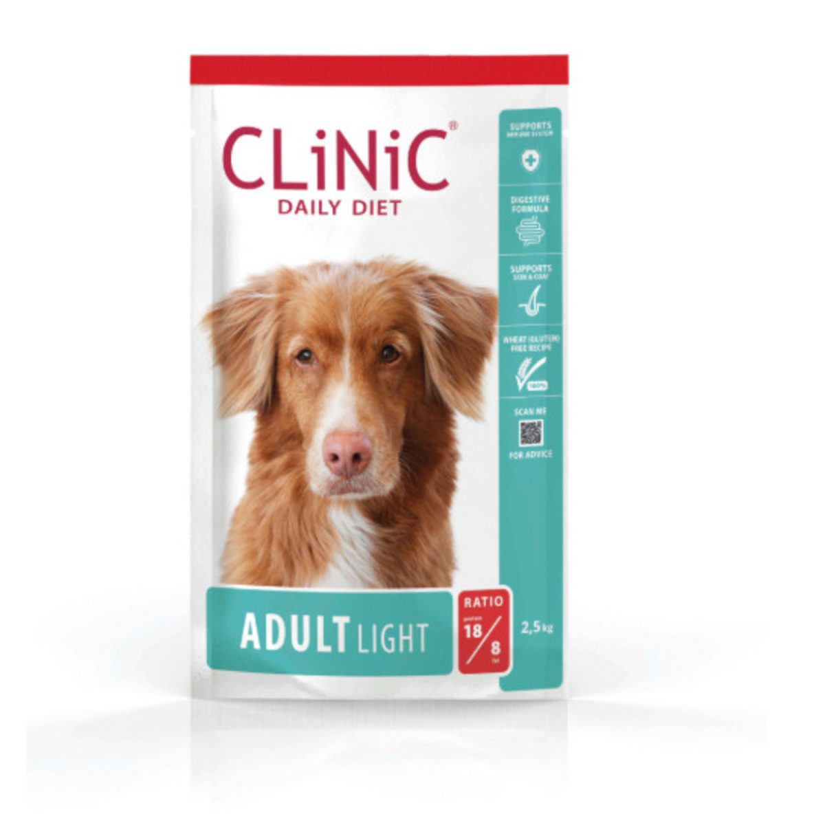De Adult Light Hondenvoeding Eend en Kip van Clinic is een hoogwaardig en volledig diervoeder voor volwassen honden. Clinic Adult Light is speciaal afgestemd op de voedingsbehoefte van volwassen honden met de neiging tot overgewicht of met een lagere energiebehoefte. De uitgebalanceerde combinatie van hoogwaardige ingrediënten en essentiële nutriënten is speciaal samengesteld om de algehele conditie en het welzijn van je hond te helpen optimaliseren. Dit komt door de volgende voordelen: