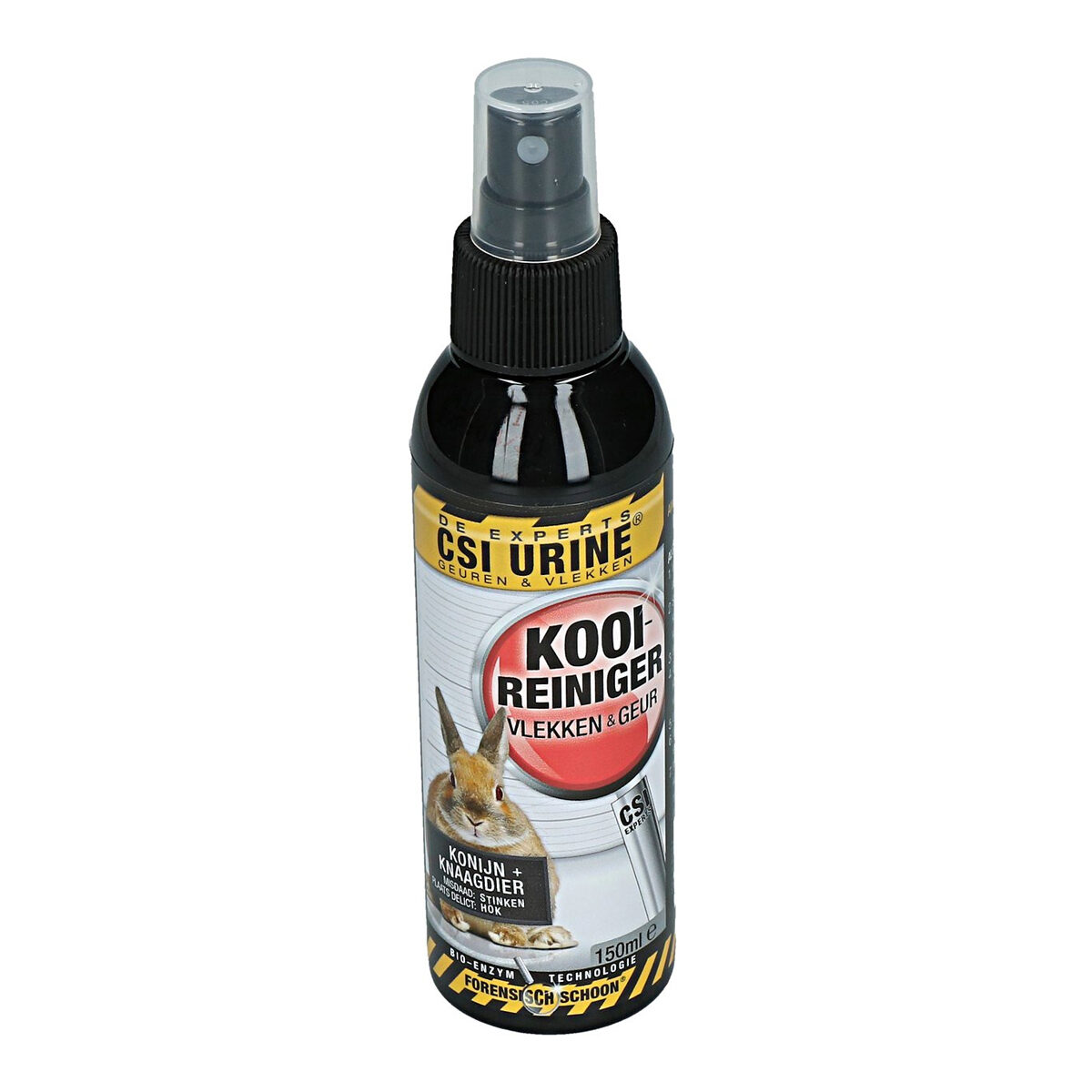 CSI Urine Kooireiniger bevat enzymen die urine aanpakken op moleculair niveau. De reiniger verwijdert (hardnekkige) urinevlekken, zelfs als ze opgedroogd zijn. Zo kom je van de vervelende geurtjes af en zal het konijnenhok of de knaagdierenkooi weer schoon zijn en fris ruiken! De spray draagt daarnaast bij aan het voorkomen van stankontwikkeling. CSI Urine is vergelijkbaar met Urine Off.