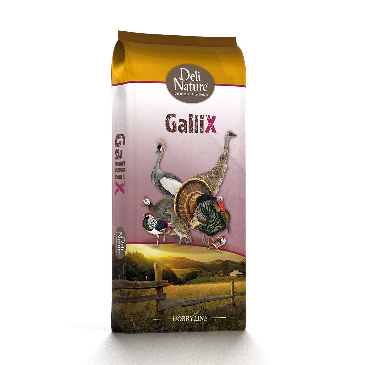 Deli Nature GalliX-Turkey-Groei-Pellet 20kg. De Deli Nature GalliX Turkey Groei Pellet is het ideale korrelvoer voor siervogels vanaf 8 weken. Na 8 weken vertonen deze dieren een regelmatige en probleemloze groei. Deze korrel kan tot het slachten gevoederd worden. Sierkalkoenen gehouden voor de leg kunnen overschakelen naar het GalliX Ornamental assortiment. Onder deze categorie komen de GalliX Ornamental Leg Pellet en de GalliX Ornamental Onderhoud Pellet.