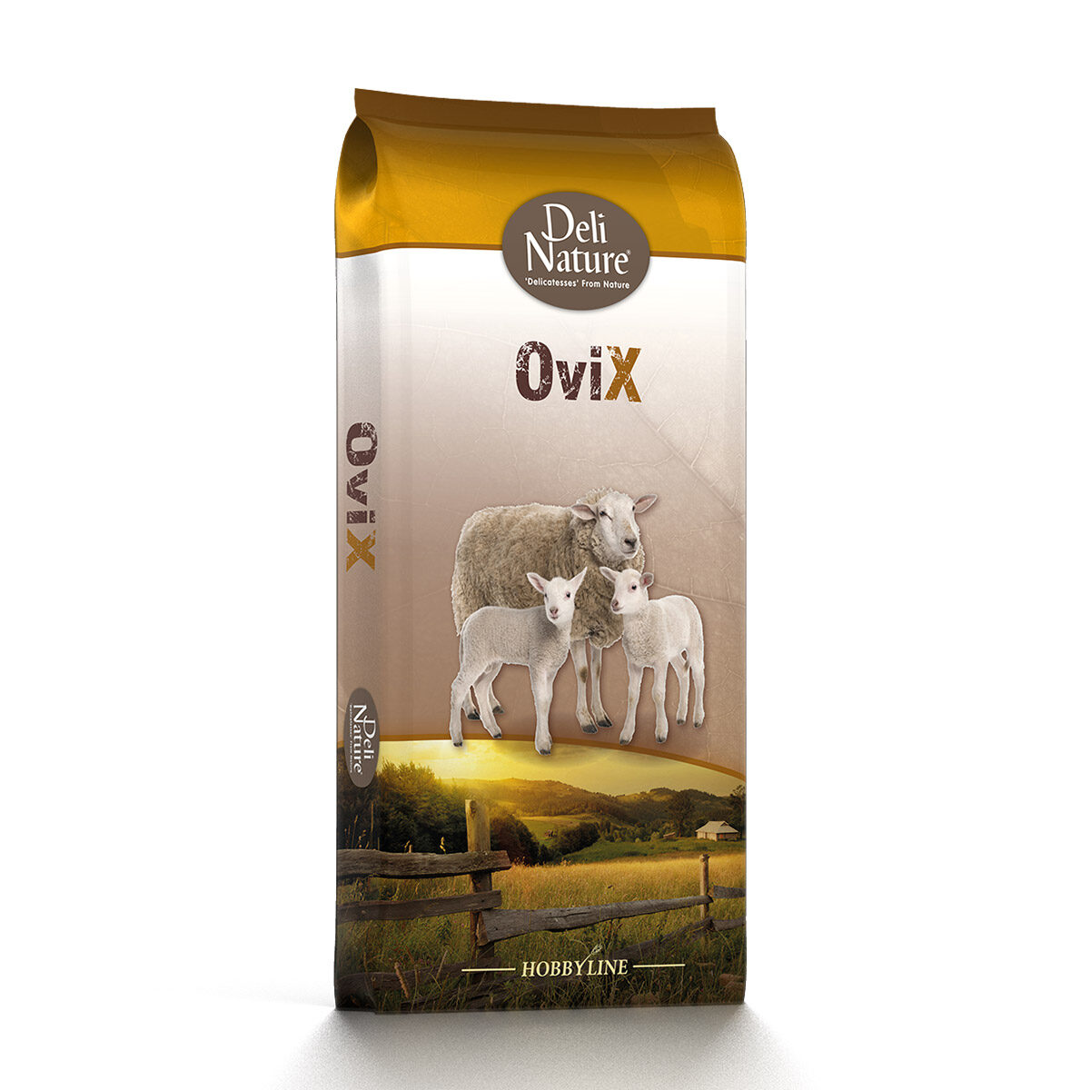 Deli Nature OviX-Onderhoud-Pellet 20kg. De Deli Nature OviX Onderhoud Pellet is krachtvoeder in korrelvorm dat volledig voldoet aan de eisen van deze kleine herkauwer. Bij OviX Onderhoud Pellet werd gekozen voor gemakkelijk verteerbare eiwitten. Om een uitgebalanceerde voeding te bekomen, werd er een evenwicht gezocht tussen snel verteerbare suikers en zetmeel en anderzijds traag verteerbare ruwe vezels. Dit evenwicht zorgt voor een goede penswerking. Toegevoegde melasse zorgt voor de smakelijkheid en een goede opname.