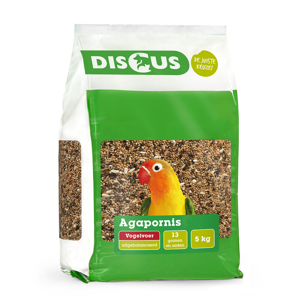 Discus Agaporniden 5 kg. Discus producten voor jouw agapornide of dwergpapegaai zijn bijzonder compleet, evenwichtig en gezond. Het vogelvoer voorziet voor de volle 100% in de voedingsbehoefte van jouw agapornide. Alleen de beste grondstoffen uit de natuur worden voor het produceren gebruikt en deze zijn zorgvuldig geselecteerd en bereid. Deze voeding is speciaal ontwikkeld om jouw agapornide van alle voedingsstoffen te voorzien.