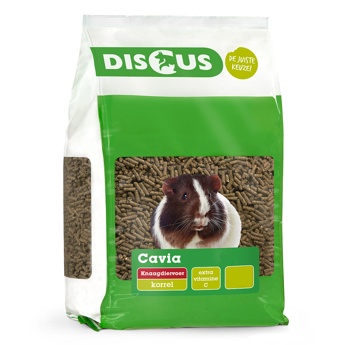 Discus Caviakorrels is een volledige voeding, met extra vitamine C, voor cavia’s van alle leeftijden. Deze homogeen samengestelde korrels voorkomen selectief eten en bevatten alle belangrijke voedingsstoffen in de juiste verhouding en een hoog aandeel vezels. Cavia’s zijn knaagdieren die vitamine C nodig hebben maar dat niet zelf kunnen aanmaken. Zij moeten vitamine C dus uit hun voeding halen. Het is dus af te raden om konijnenvoer of knaagdiervoer aan cavia’s te geven, omdat deze voeding te weinig vitamine C bevat.