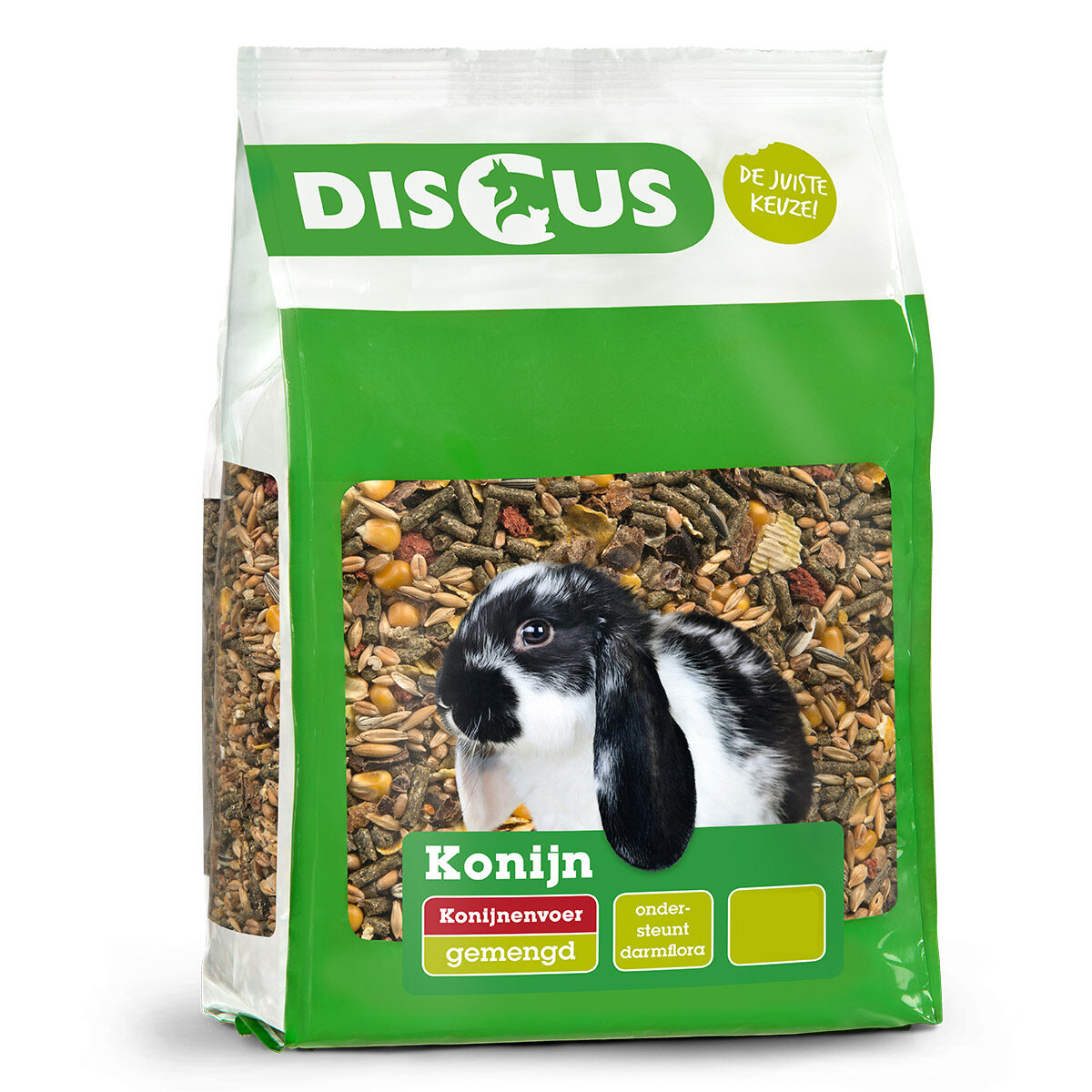 Discus Konijnenvoer Plus is verkrijgbaar in 2,5 kg, 4 kg en 15 kg.