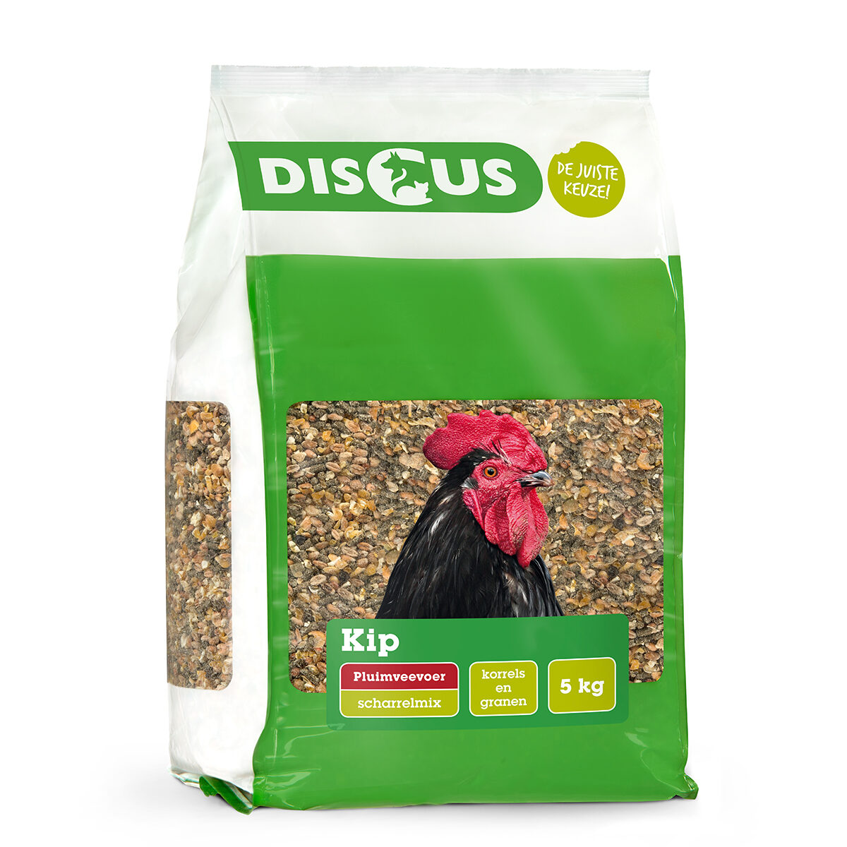 Discus Scharrelmix Kip 5kg. Scharrelmix bevat gemengd kippenvoer, dat past bij het natuurlijke scharrelgedrag. Je kippen eten eerst de lekkerste granen op, let daarom op dat ze de voerbak helemaal leeg eten zodat ze alle voedingsstoffen binnenkrijgen. Geef geen extra granen als aanvulling.