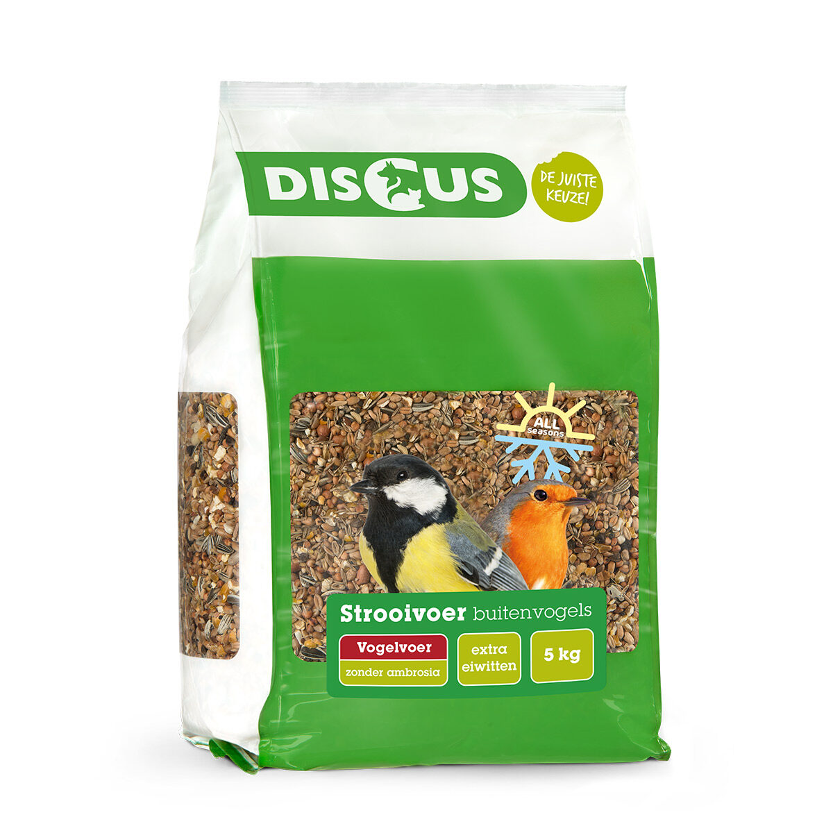 Discus Strooivoer 5 kg. Discus producten voor buitenvogels zijn bijzonder compleet, evenwichtig en gezond. Alleen de beste grondstoffen uit de natuur worden gebruikt en deze zijn zorgvuldig geselecteerd en bereid. De voeding is speciaal ontwikkeld om buitenvogels ook van alle voedingsstoffen te voorzien.