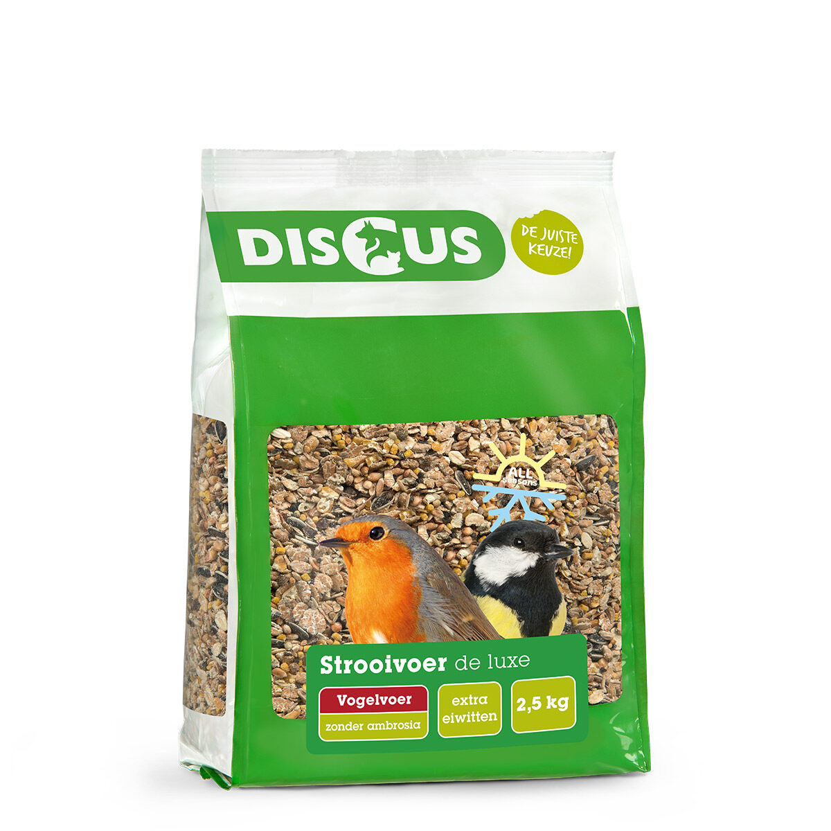 Discus Strooivoer Deluxe 2,5 kg. Discus producten voor jouw buitenvogel zijn bijzonder compleet, evenwichtig en gezond en voorzien voor de volle 100% in de voedingsbehoefte van buitenvogels. Alleen de beste grondstoffen uit de natuur worden voor het produceren van de voeding gebruikt en deze zijn zorgvuldig geselecteerd en bereid. De voeding is speciaal ontwikkeld om ook buitenvogels van alle voedingsstoffen te voorzien.