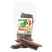Discus Vleesstrips Lam 100 gram. Deze Discus vleesstrips zijn van 100% lamsvlees. Hondensnacks gemaakt van één diersoort zijn goed te gebruiken bij een eliminatiedieet. Deze vleestrips voor je hond zijn de ideale lekkernij om tussendoor je hond mee te belonen. Ook als trainingssnack zijn de Discus vleesstrips van lam erg populair. De vleesstrips zijn makkelijk te breken en daardoor eenvoudig in kleine stukjes te geven.