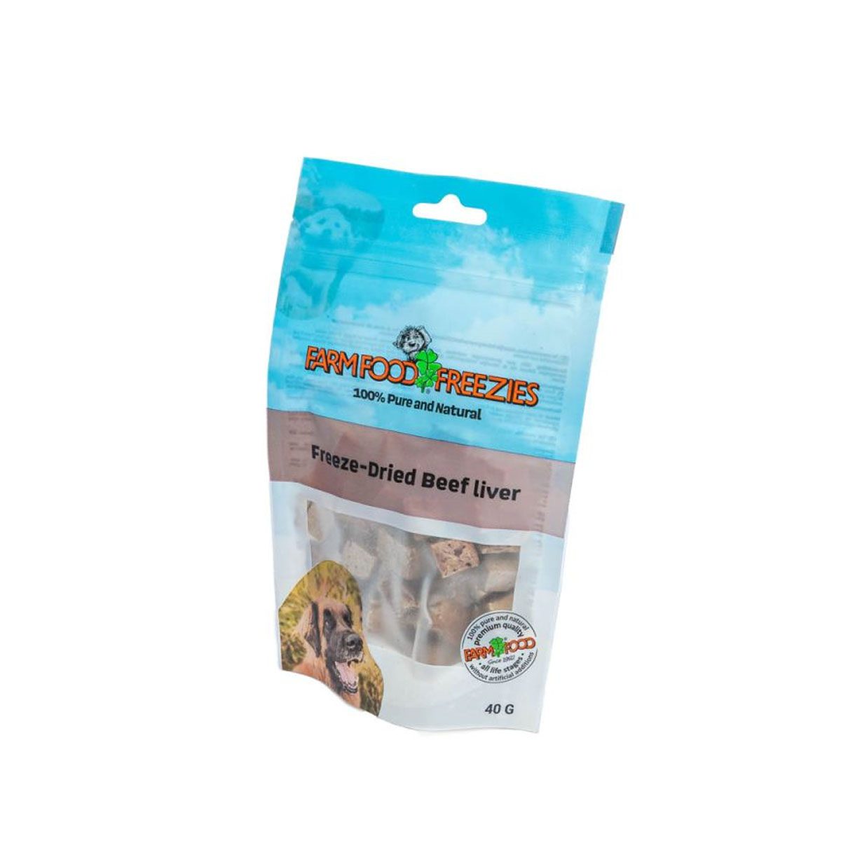 De Farm Food Freezie is een natuurlijke beloningssnack gemaakt van 100% puur runderlever. De stukjes vlees zijn kleine blokjes van ongeveer 1 – 2,5 cm groot en worden gevriesdroogd voor een optimaal behoud van smaak, geur en voedingsstoffen. Verder is deze snack glutenvrij en graanvrij. De snacks bevatten geen chemische antioxidanten, conserveringsmiddelen, toegevoegde kleurstoffen, geurstoffen of smaakstoffen.