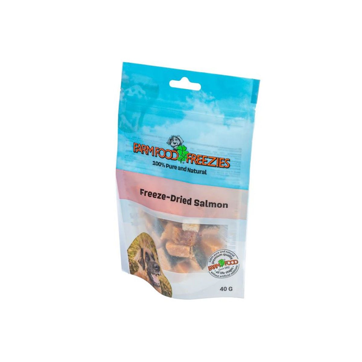 De Farm Food Freezie is een natuurlijke beloningssnack gemaakt van 100% puur zalmfilet. De stukjes vis zijn kleine blokjes van ongeveer 1 – 2,5 cm groot en worden gevriesdroogd voor een optimaal behoud van smaak, geur en voedingsstoffen. Verder is deze snack glutenvrij en graanvrij. De snacks bevatten geen chemische antioxidanten, conserveringsmiddelen, toegevoegde kleurstoffen, geurstoffen of smaakstoffen.