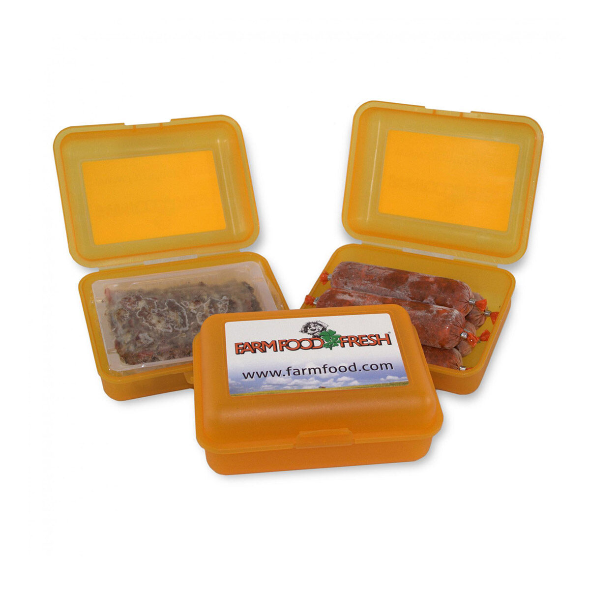 Het Farm Food bewaardoos is ideaal voor het bewaren of ontdooien van je Farm Food Fresh voeding. Er past gemakkelijk een verpakking van 400 gram hondenvoer of enkele worstjes of snacks in het doosje. Doordat het bewaardoosje goed hersluitbaar is kun je Farm Food Fresh makkelijk over meerdere maaltijdmomenten per dag verdelen. Hiernaast is het bewaar- en ontdooidoosje ideaal te gebruiken om brokken of snacks mee te nemen voor tijdens een wandeling of op reis.