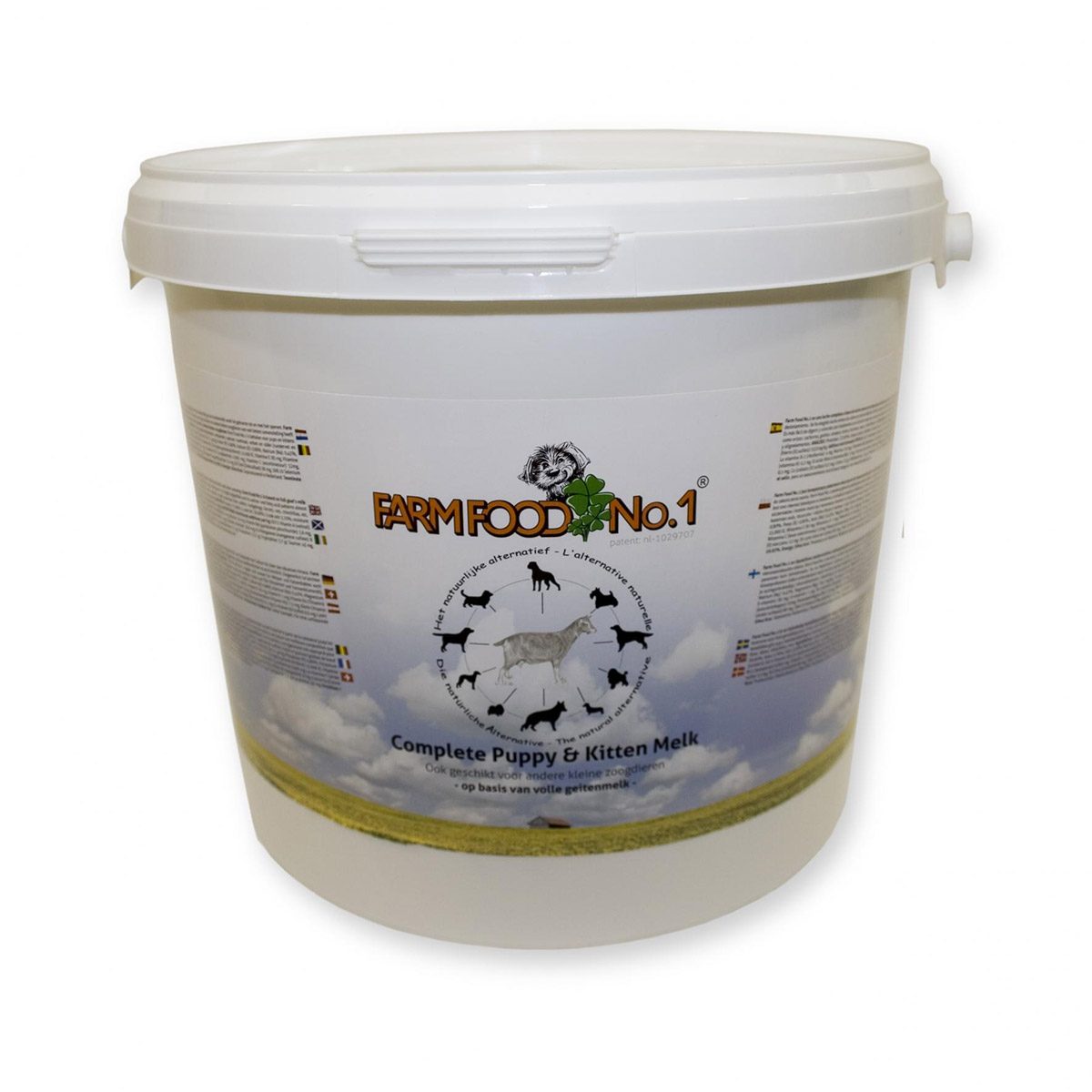 Farm Food No.1 Puppymelk 3 kg. Farm Food No.1 is een complete melkvoeding voor pasgeboren pups, kittens en andere kleine zoogdieren. Het is bedoeld ter vervanging van en als aanvulling op de moedermelk vanaf de geboorte tot en met het spenen. Farm Food No.1 is op basis van volle geitenmelkpoeder. De keuze voor volle geitenmelkpoeder is gemaakt vanwege het feit dat geitenmelk van nature voor pups, kittens en andere kleine zoogdieren een veel betere samenstelling heeft dan koemelk. Het is lichter verteerbaar en komt, zowel in aminozuurpatroon als in vetzuurpatroon, veel meer overeen met de moedermelk dan koemelk.