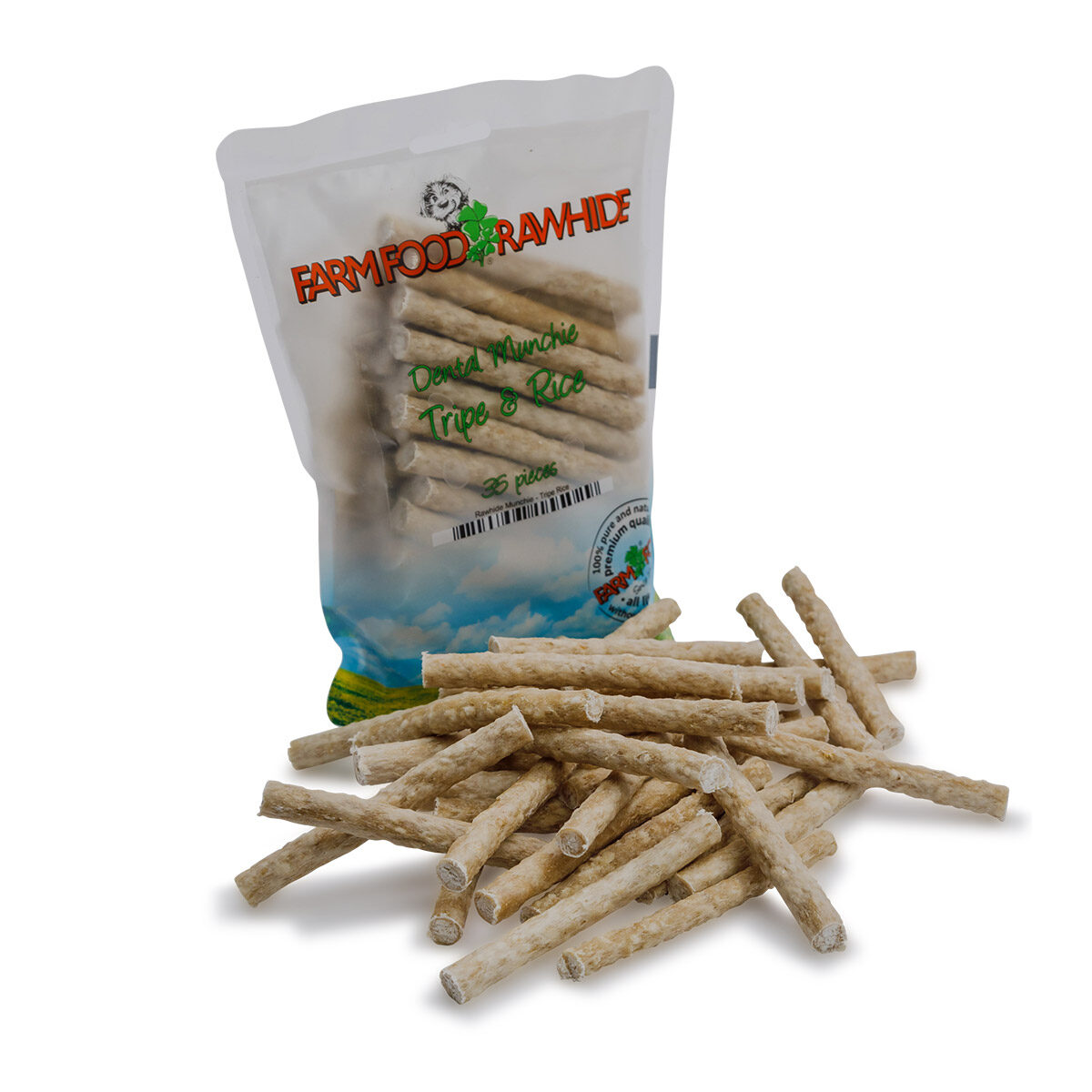 Farm Food Rawhide Dental Munchie is verkrijgbaar in verschillende varianten: Munchie Hart, Munchie Natural en Munchie Pens.